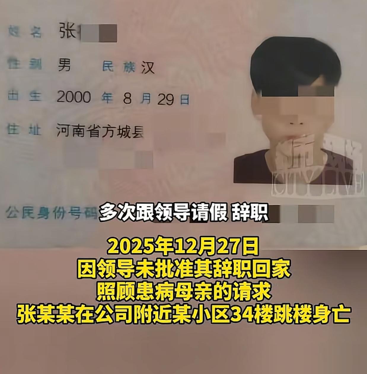 AG官网-痛心!河南帅哥小张去世,仅25,因母亲病重公司不批假想不开跳楼